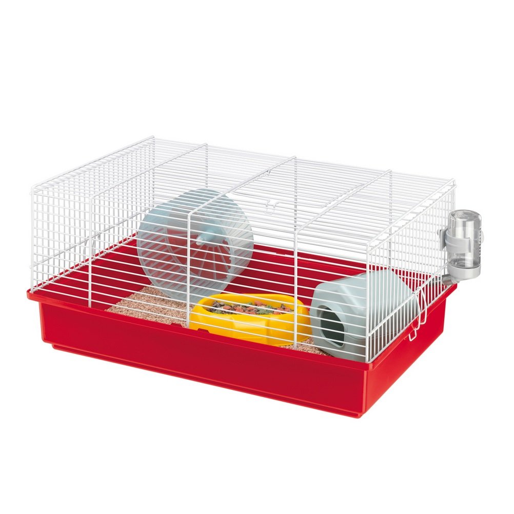 כלוב לאוגרים דגם קריסטי של חברת IMAC, מיוצר באיטליה המגיע עם מגוון אביזרים כמו בית לאוגר, גלגל משחק, כלי אוכל ושתייה.